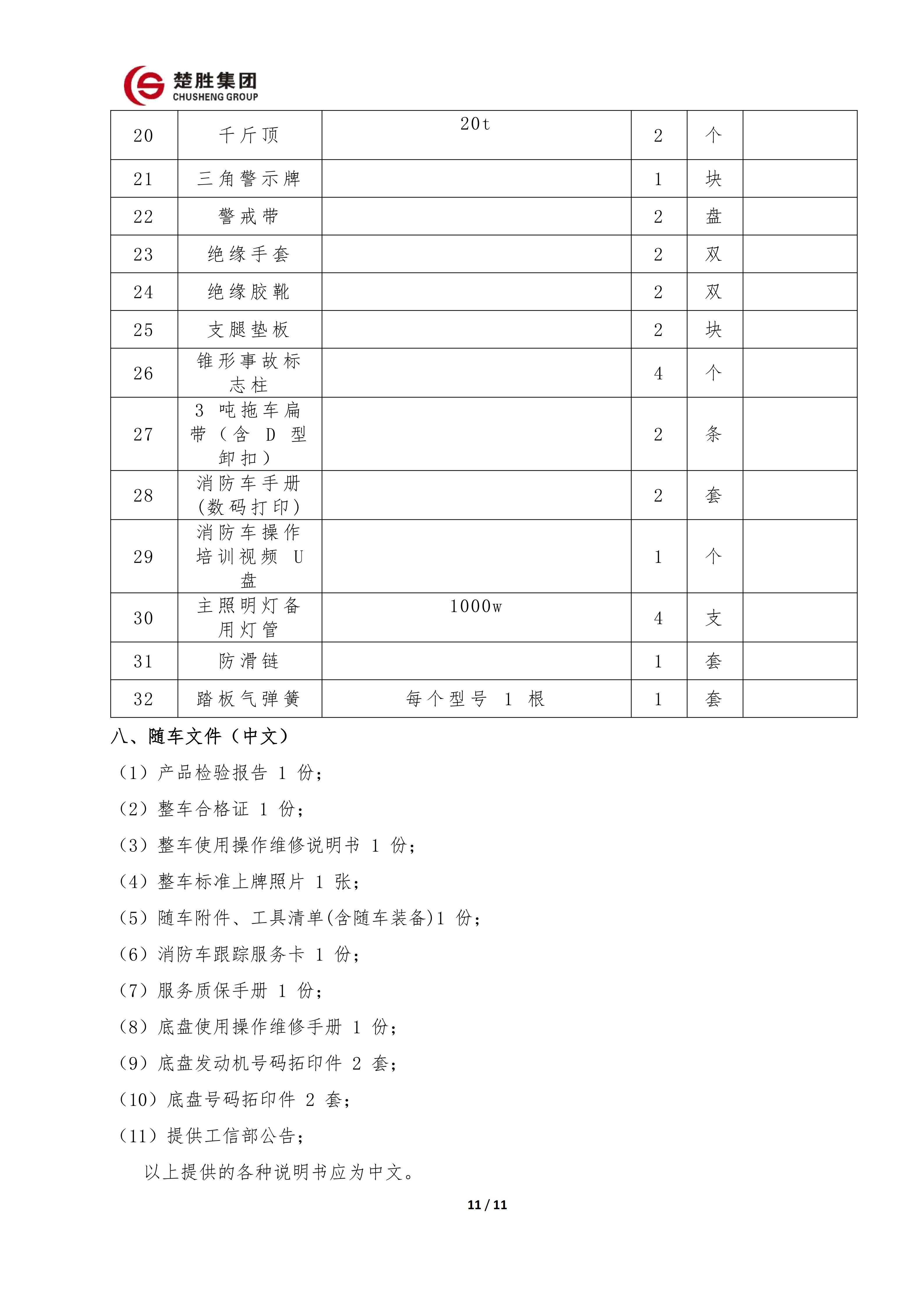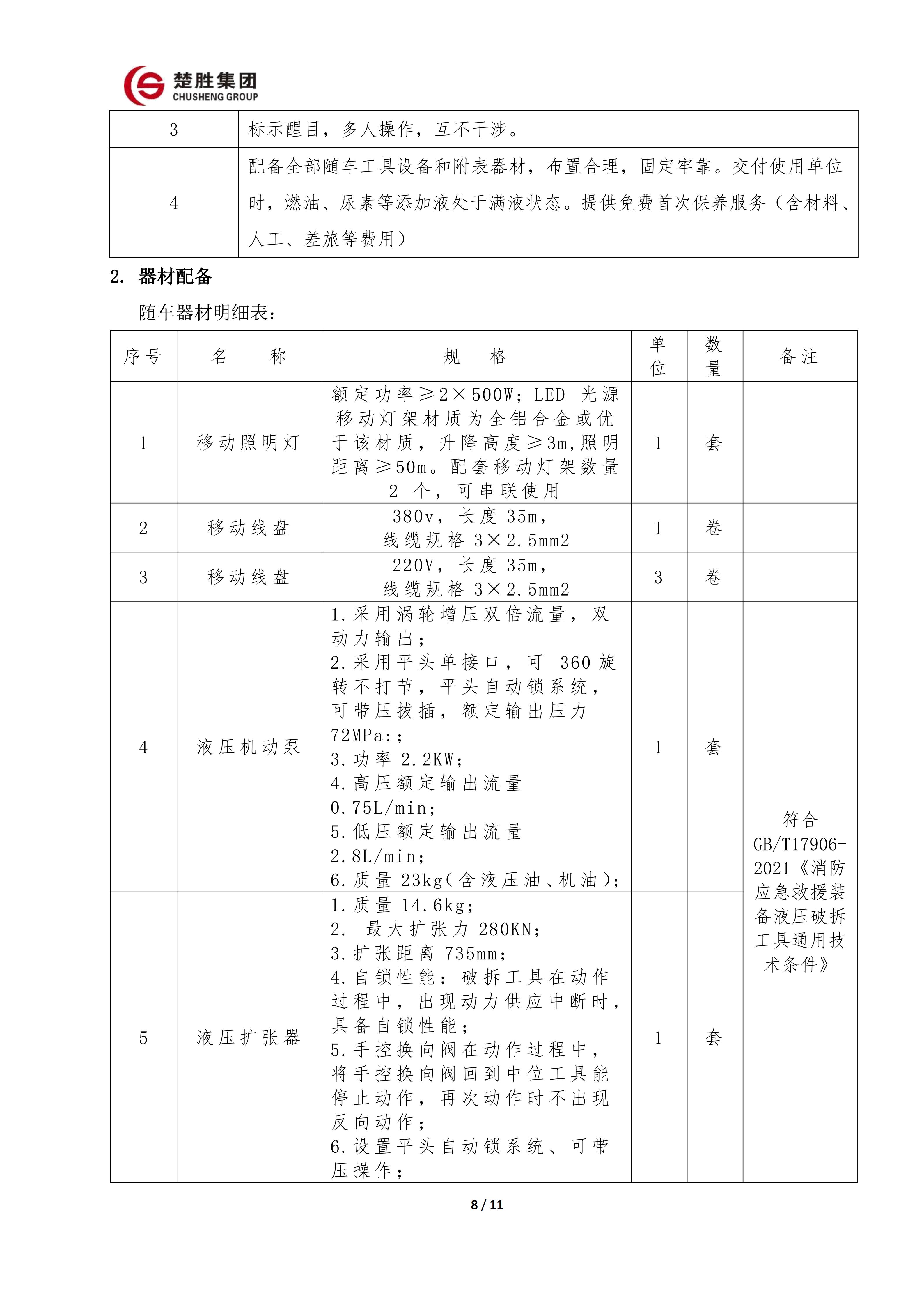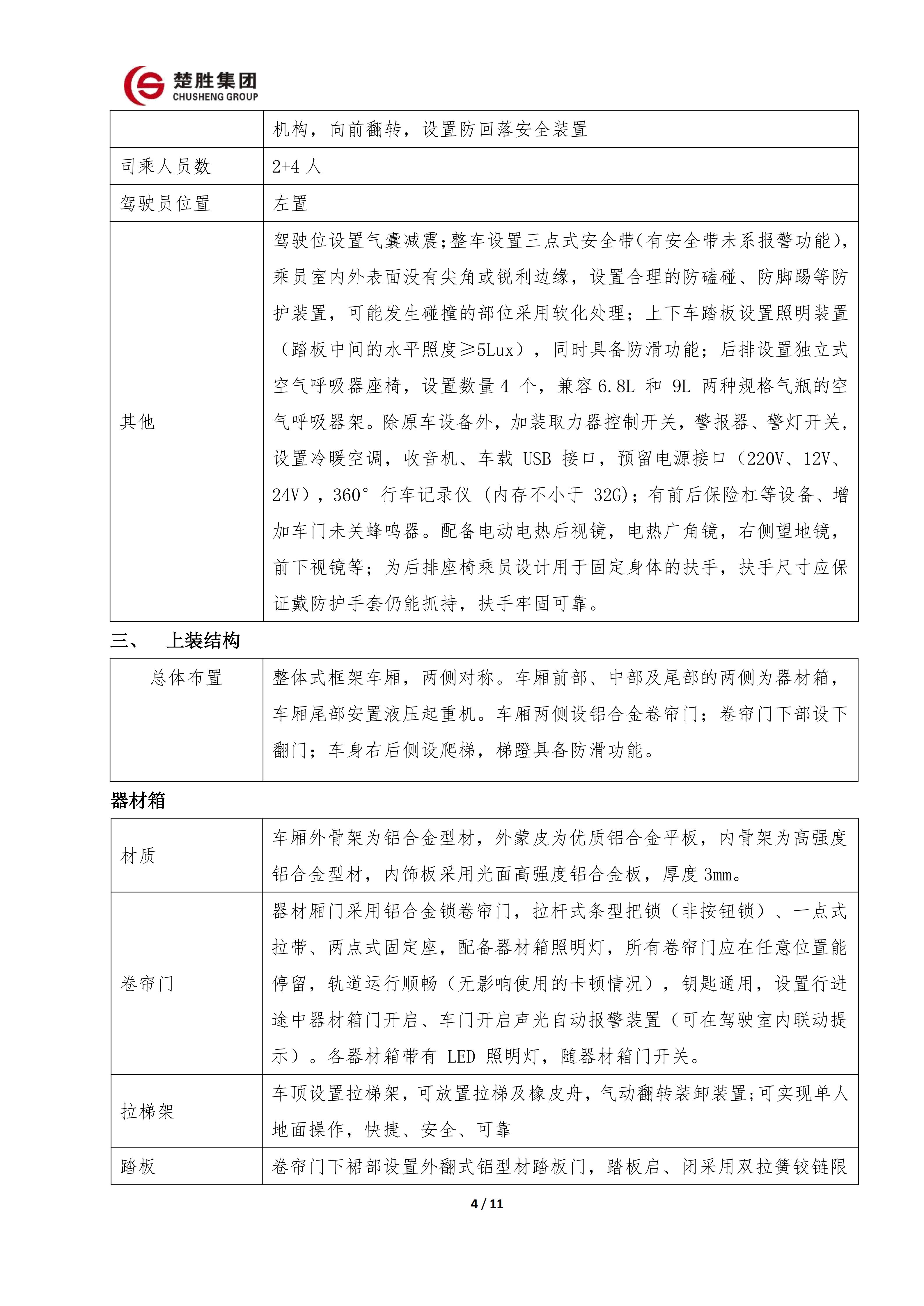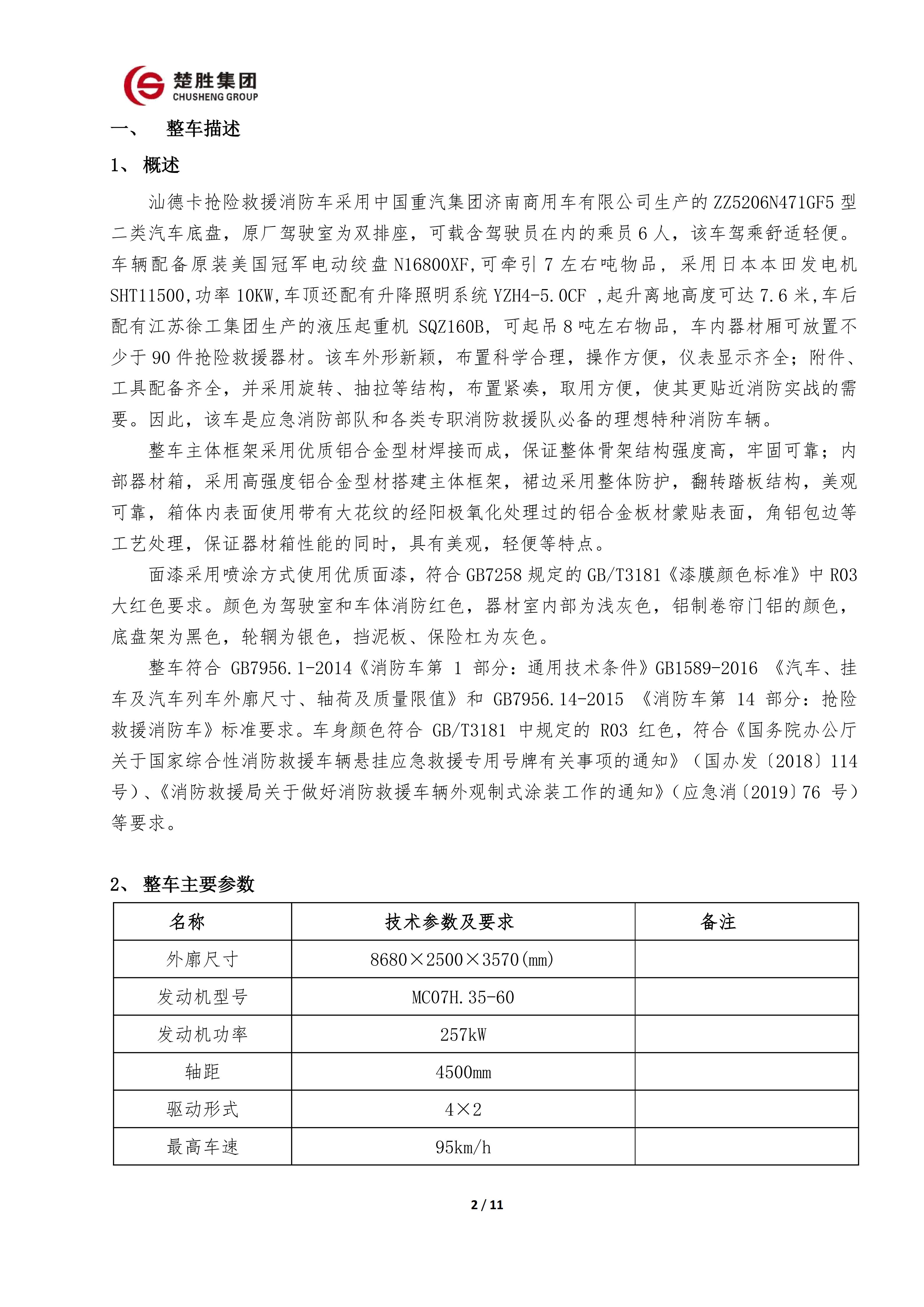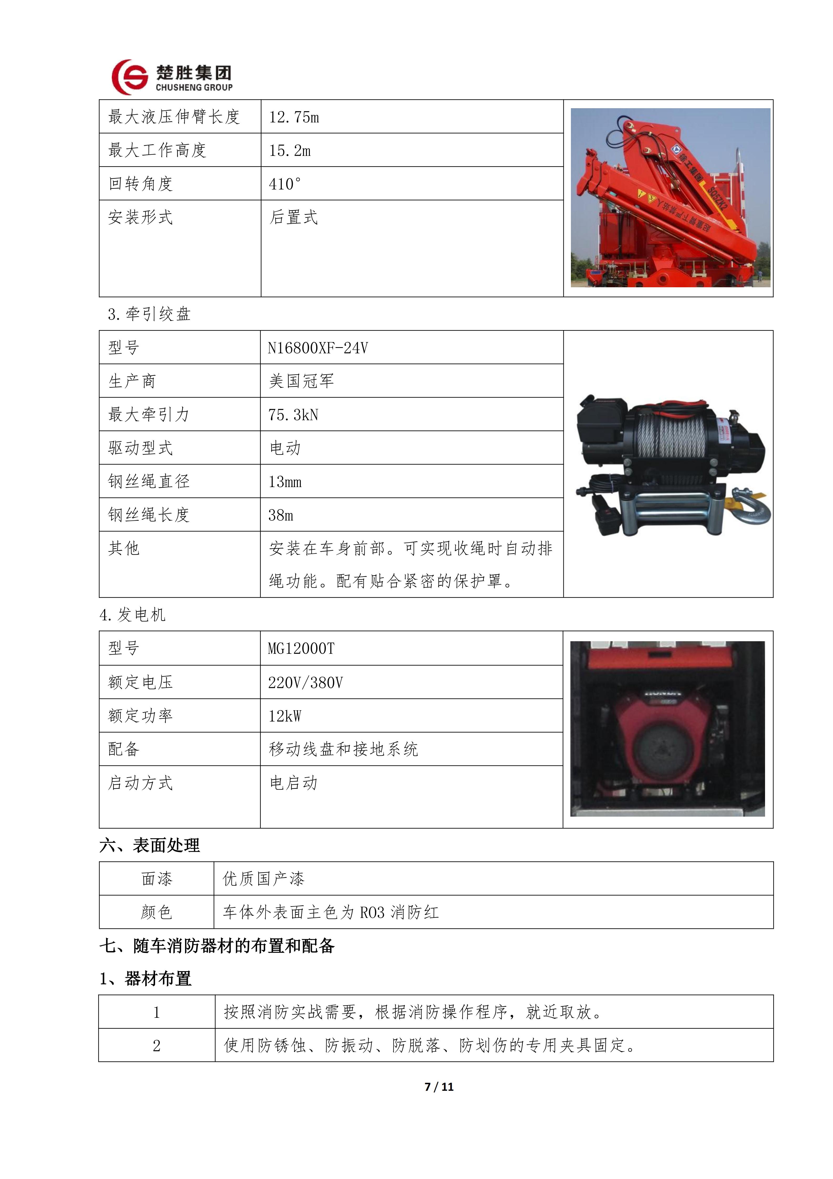 楚勝牌 CSC5030TXFQC10/CC6 型器材消防車