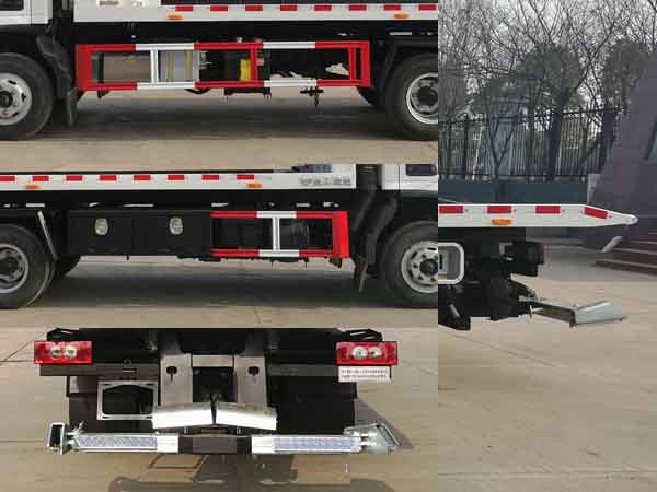 | 配置 | 1、該車用于道路車輛清障,主要專用裝置為平板、托臂、絞盤、鋼絲繩、油缸。托舉質量:2560kg。僅采用3800mm軸距。2、側防護采用冷彎型鋼/Q235,螺栓連接;后防護由專用裝置代替,下邊緣離地高450mm。選裝后部上尾板,選裝后部結構樣式。3、ABS系統**器型號/生產企業:ABS-E/威伯科汽車**系統(**)有限公司,ABS-VI·E/廣州瑞立科密汽車電子股份有限公司。 | ||